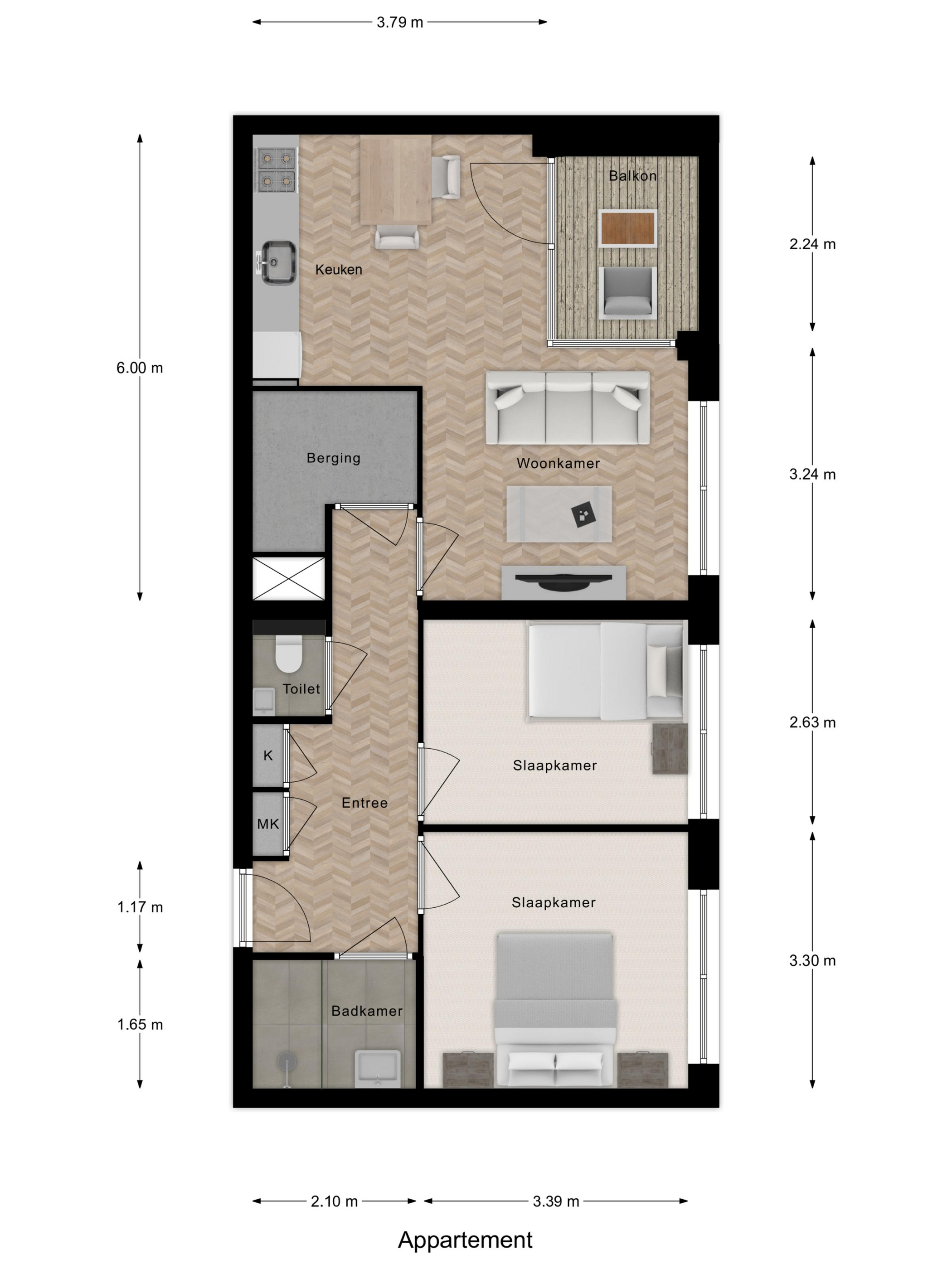 Luxe appartement voorzien van twee slaapkamers, gelegen op de 3e etage en toegankelijk met de lift. Vanuit de woonkamer is er toegang tot het balkon. Het appartement is voorzien van een rechte keukenopstelling met inbouwapparatuur, zoals een vaatwasser, combi/oven en koel-vriescombinatie. De badkamer is voorzien van een douchehoek, badkamermeubel en spiegel. Uw wasmachine/droger plaatst u in de interne berging.